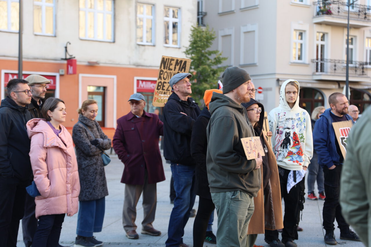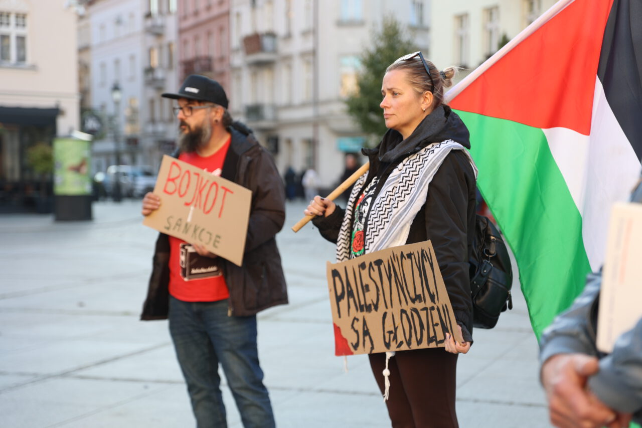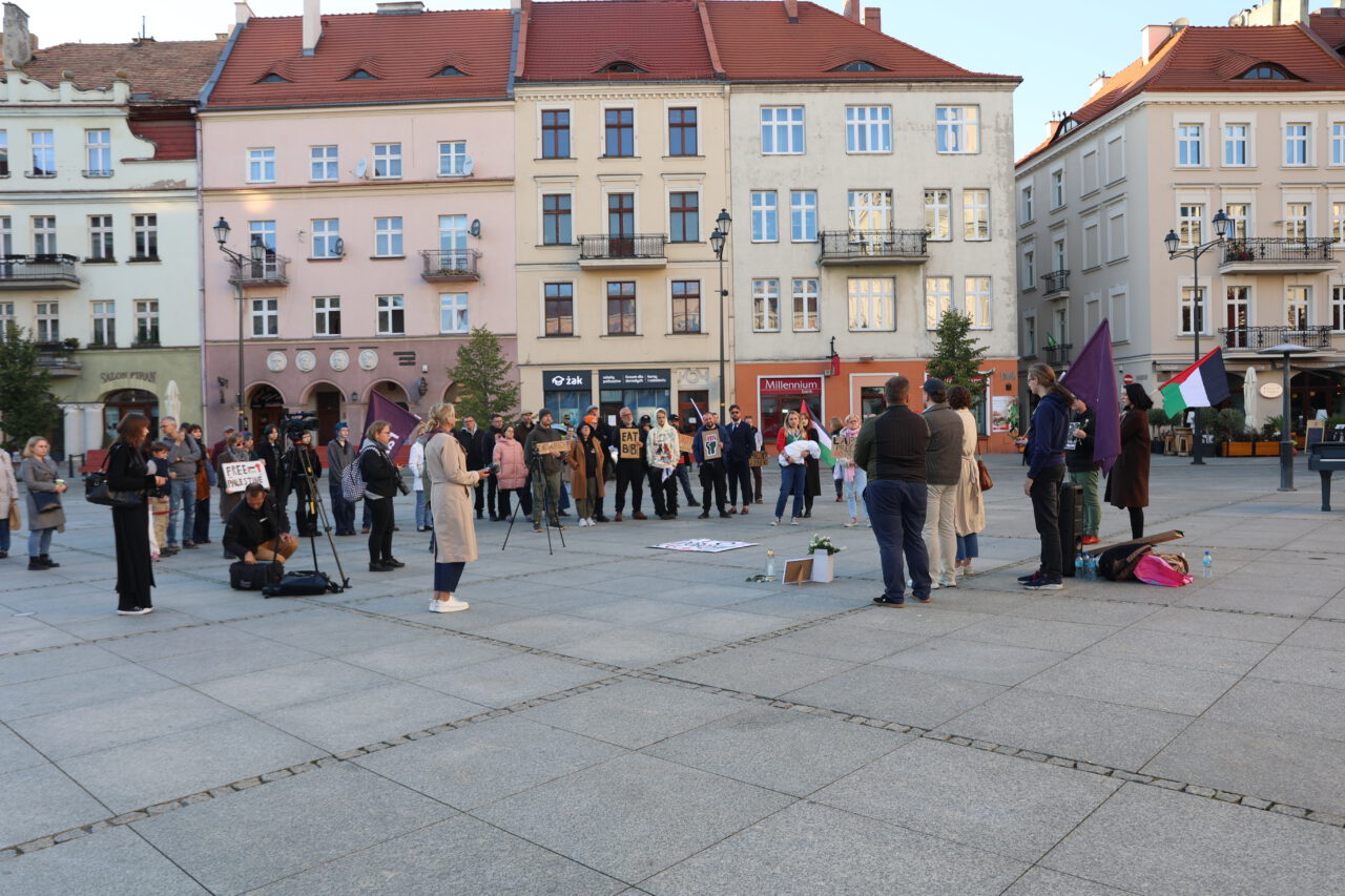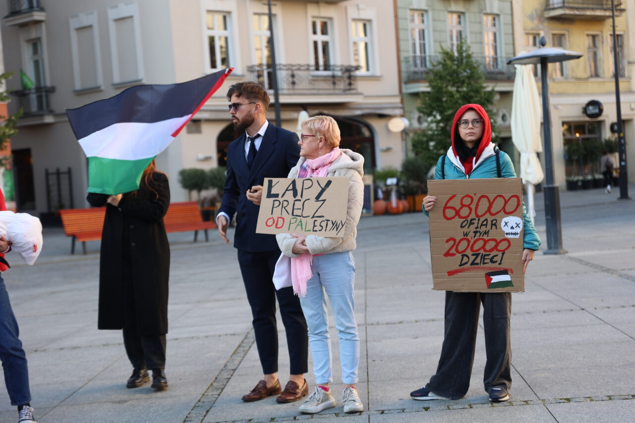 Na Głównym Rynku w Kaliszu odbył się w piątek protest w sprawie Strefy Gazy. Jego uczestnicy domagali się przede wszystkim uwolnienia polskich obywateli zatrzymanych na statkach tzw. Flotylli Wolności.