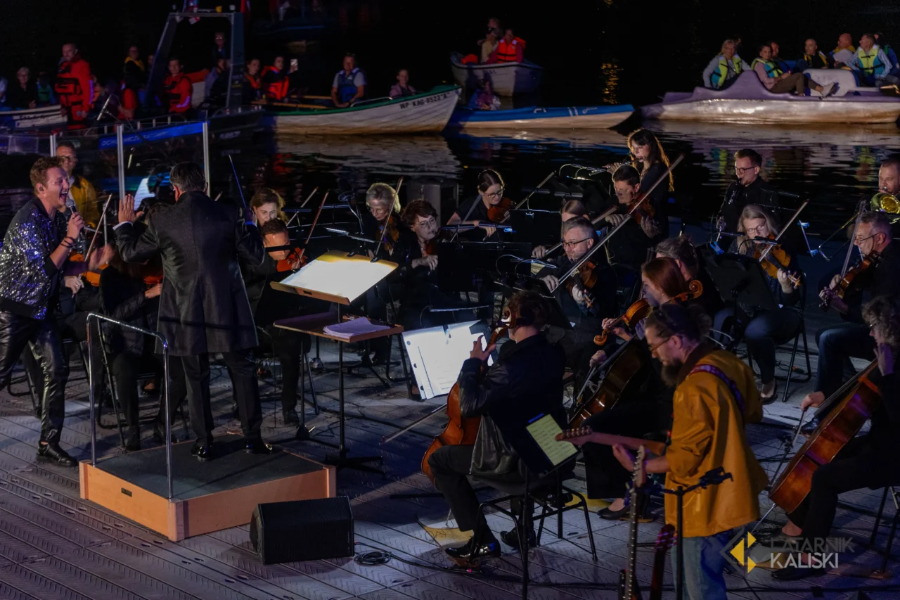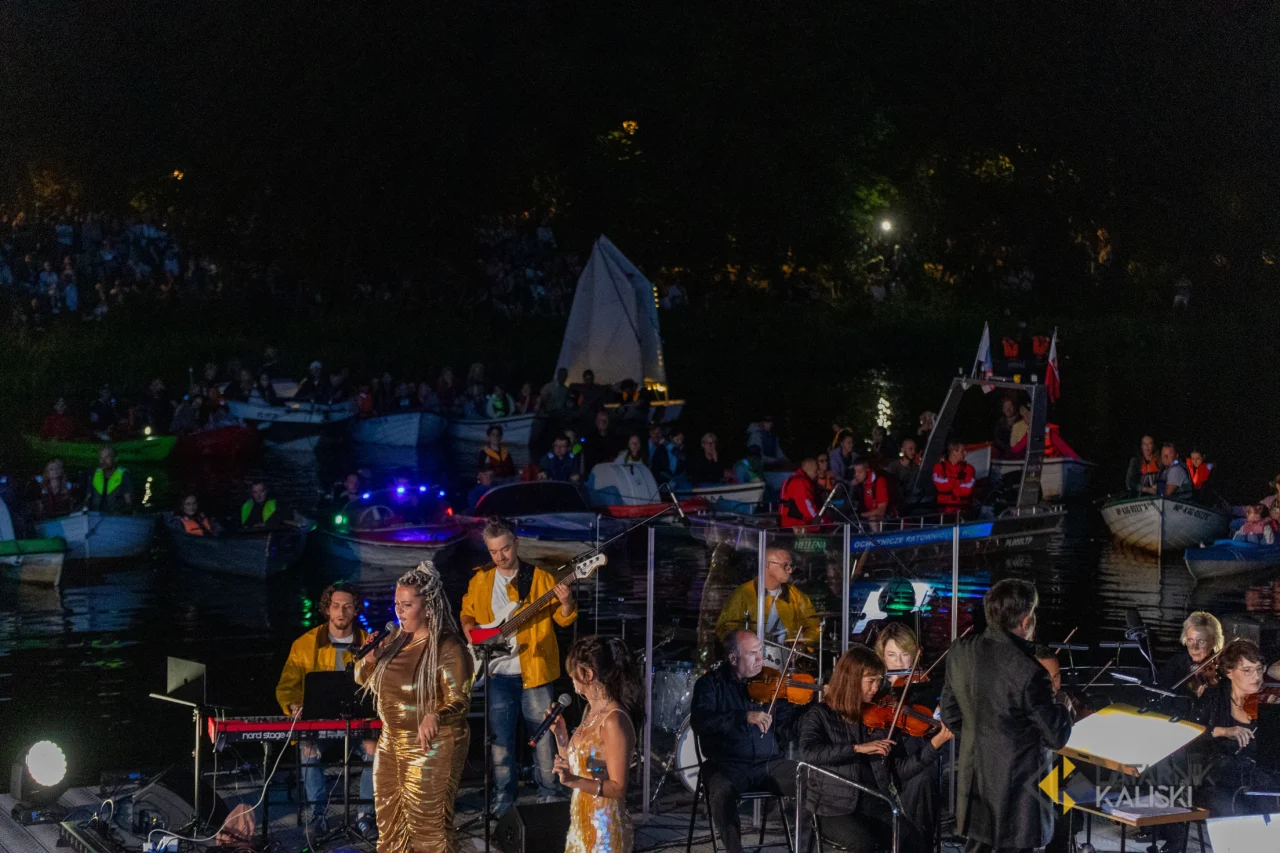 Na scenie, umieszczonej na platformie na rzece Prośnie przy Placu Bogusławskiego, wystąpiła Orkiestra Symfoniczna Filharmonii Kaliskiej pod batutą maestro Rubena Silvy. Wykonania zapewniło czworo wokalistów: Kamil Franczak, Weronika Skalska, Małgorzata Janek i Michał Lech, którym towarzyszył zespół instrumentalistów.